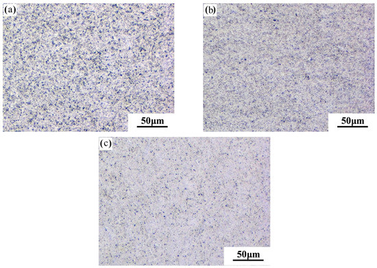 Optical micrographs of specimens with different cycles of MDF were shown in Figure 1 and Figure 4. The microstructures of the as-received CP Ti were polygonal grains with clear grain boundaries (GBs) and some deformation twins, with the mean grain size about 35 μm, as shown in Figure 1. Severe plastic deformation led to more dislocation accumulations and the production of finer subgrain structures [16,17]. After the first cycle of MDF, polygonal grains were disappeared for refinement, and GBs were ambiguous. With the increase of MDF cycles, the grains were finer.