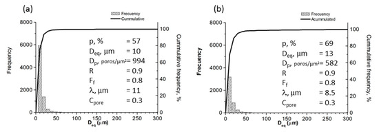 Results of optical image analysis of foams designed with (a) 50% and (b) 60 % porosity.