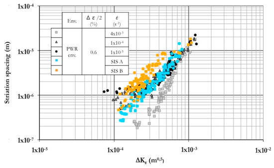 - Tsutsumi, K.; Dodo, T.; Kanasaki, H.; Nomoto, S.; Minami, Y.; Nakamura, T. Fatigue behavior of stainless steel under conditions of changing strain rate in PWR primary water. In Pressure Vessel and Piping Codes and Standards; ASME: New York, NY, USA, 2001; pp. 135–141. [Google Scholar]
