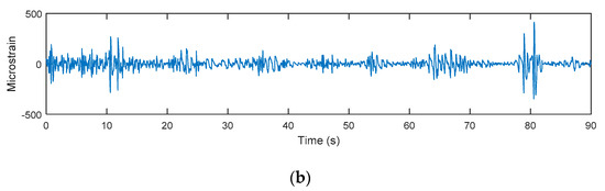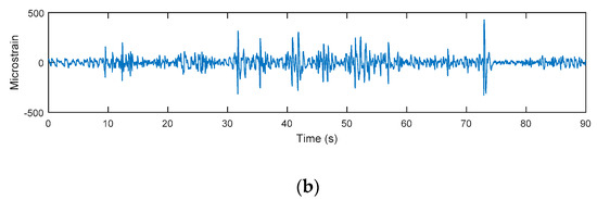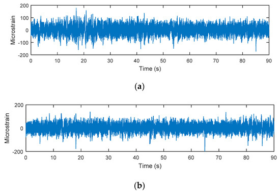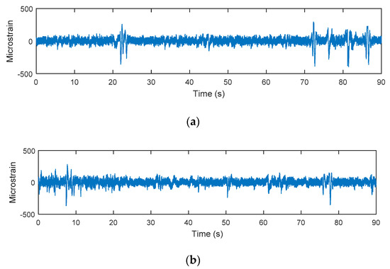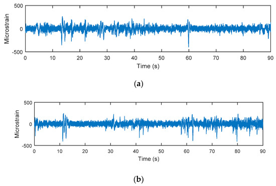 Measured strain signals: (a) Highway A, (b) Highway B.
