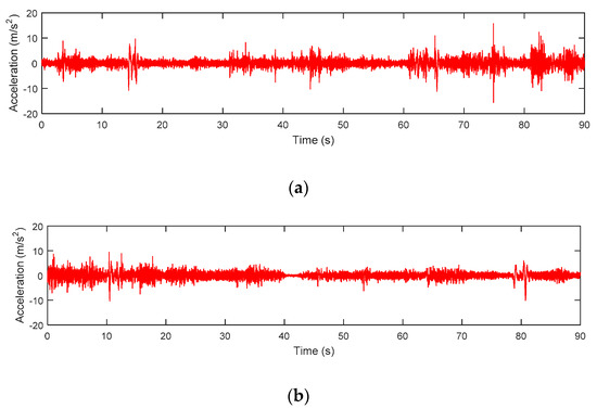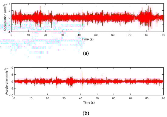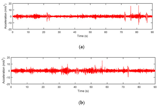 Top mount acceleration signals: (a) Campus A, (b) Campus B.