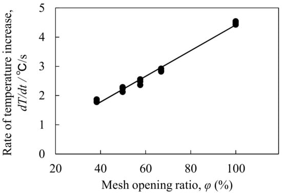 Relationship between rate of temperature increase and mesh opening ratio during heat treatment.