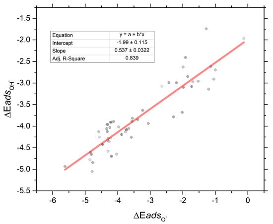 3.1. Further Understanding Bandwith and Correlations for Hydrogenation of O* and OH* on Graphene (Counter-Intuitive Trends Explanation)