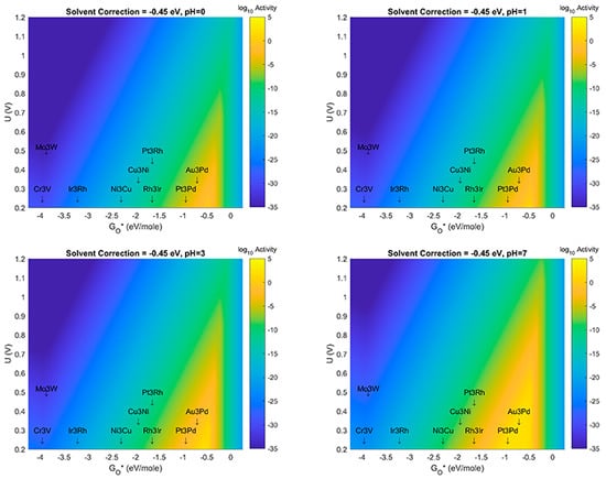 Rankin, R.B.; Lozano, T. Adsorption Energy Shifts for Oxygen and Hydroxyl on 4-atom Metal-Decorated Graphene Catalysts Via Solvation, pH, and Substrate Dopants: Effects on ORR Activity. Metals 2019, 9, 227. https://doi.org/10.3390/met9020227