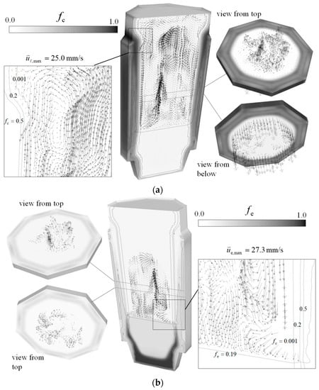 - Wu, M.; Ludwig, A. Influence of phase transport phenomena on macrosegregation and structure formation during solidification. Adv. Eng. Mater. 2003, 5, 62–66. [Google Scholar] [CrossRef]
