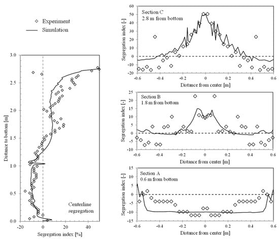 The first simulation with this model was made by Ni and Beckermann [41] to explore the crystal sedimentation. Classical knowledge about the crystal sedimentation is superficial, as plotted by Ohno in Figure 4a [101]. No quantitative correlation between the sedimentation induced solidification results (e.g., grain size distribution, macrosegregation) and the process variables (e.g., temperature, constitutional undercooling) could be derived, because the two-phase flow and its interplay with the local crystal growth kinetics and the rearrangement of the grain distribution were missing. Therefore, such exploratory simulations as done by Ni and Beckermann have become crucially important to achieve just a mere basic understanding of this correlation.