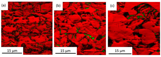 - The austenite volume fraction before the tensile test obtained by EBSD is similar to the results obtained by X-Ray in all three cases. It confirms that the space analysed for microstructural characterization by EBSD is representative of the material;
