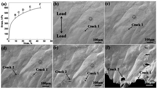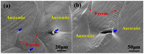 3.3. In Situ SEM Observation of Crack Initiation in the Aged CDSS