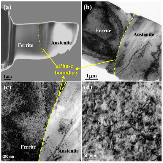 3.4. TEM Observation of Deformed Microstructures in the Aged CDSS