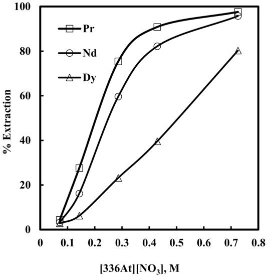 3.2. Effect of [336At][NO3] Concentration on Solvent Extraction of Nd, Pr and Dy