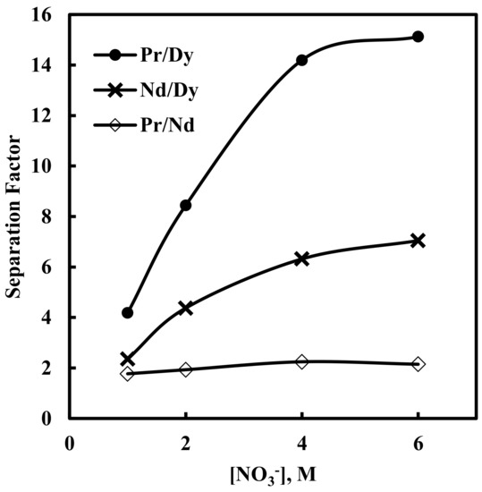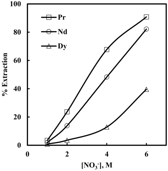 3.3. Effect of Nitrate Concentration on Solvent Extraction of Nd, Pr and Dy