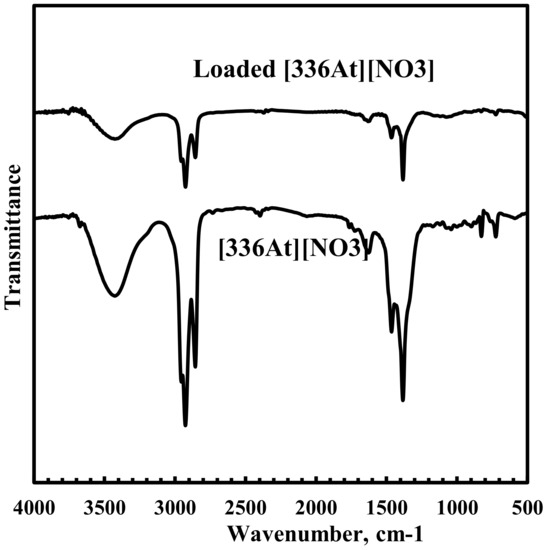 3.5. FTIR Spectra of [336At][NO3] and Nd Loaded [336At][NO3]