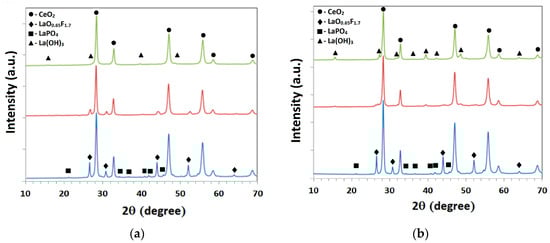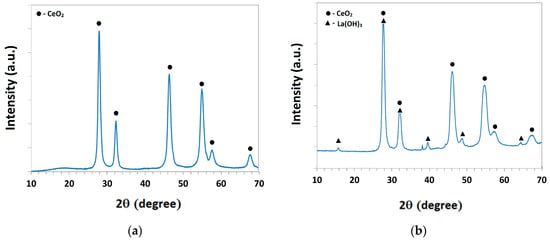- Ryan, K.M.; McGrath, J.P.; Farrell, R.A.; O Neill, W.M.; Barnes, C.J.; Morris, M.A. Measurements of the lattice constant of ceria when doped with lanthana and praseodymia—The possibility of local defect ordering and the observation of extensive phase separation. J. Phys. Condens. Matter 2003, 15, L49–L58. [Google Scholar] [CrossRef]