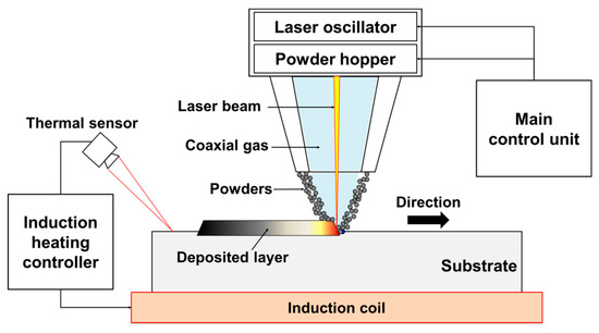 - Shim, D.S.; Baek, G.Y.; Lee, E.M. Effect of substrate preheating by induction heater on direct energy deposition of AISI M4 powder. Mat. Sci. Eng. A 2017, 682, 550–562. [Google Scholar] [CrossRef]
