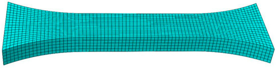 The joint model is constrained at one end and loaded the cyclic stress range of 216 MPa with a stress ratio of 0.1 at another end of the joint in the X-axial direction. The loaded cyclic stress is schematically drawn in Figure 8. The hexahedron mesh with eight nodes element type of C3D8R is selected to solve the structure. The size of each element is approximately 1.3 mm × 0.8 mm × 1.2 mm. 3600 elements and 4758 nodes are obtained to simulate the FSW joints, as shown in Figure 9. The model does not include the clamping part and the cyclic stress as a surface load is directly applied to the section of the right end.