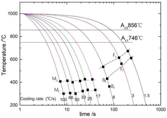 - Yogo, Y.; Kurato, N.; Iwata, N. Investigation of Hardness Change for Spot Welded Tailored Blank in Hot Stamping Using CCT and Deformation-CCT Diagrams. Metall. Mater. Trans. A 2018, 49, 2293–2301. [Google Scholar] [CrossRef]