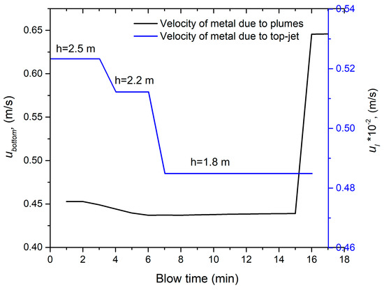 - The metal flow resulting from the top-jet and the bottom stirring plumes is assumed to be additive, hence the surface renewal velocity is the sum of the top-jet and the bottom-stirring surface renewal velocities.