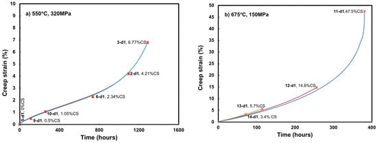 | At 550 °C, 320 MPa (after 8% pre-strain) | HRA1C-5 | 5-d1 | 0 |