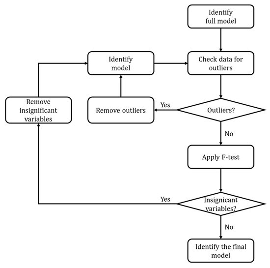 A multiple linear regression (MLR) model with single variable and two variable interaction terms was used in this study. The identification of both the aforementioned models included the following steps:
