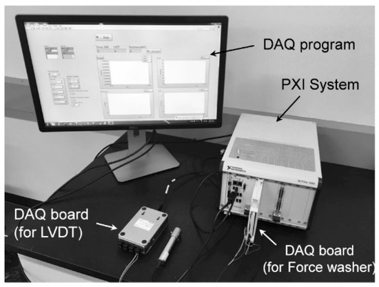 DAQ system for measuring both the displacement from LVDT and the preload from a washer-type load cell.