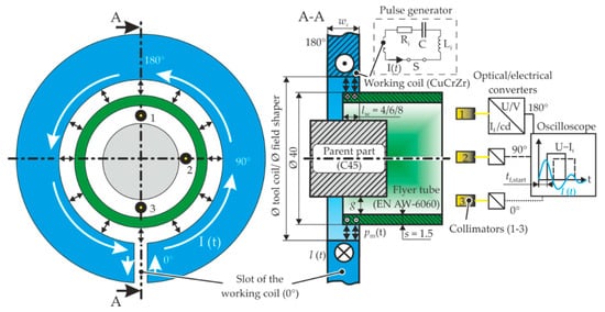 - Bellmann, J.; Lueg-Althoff, J.; Schulze, S.; Gies, S.; Beyer, E.; Tekkaya, A.E. Measurement and analysis technologies for magnetic pulse welding: Established methods and new strategies. Adv. Manuf. 2016, 322–339. [Google Scholar] [CrossRef]