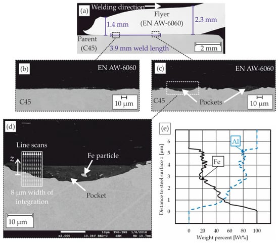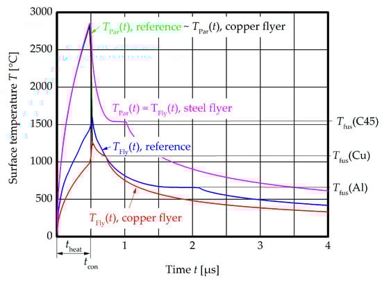- At the welding interface, just solid and liquid phases are present at the time of contact. If the surface temperature would lead to vaporization before contact, the material in the gaseous phase would be pressed out of the joining gap together with the CoP during MPW, provided a sufficient collision angle.
