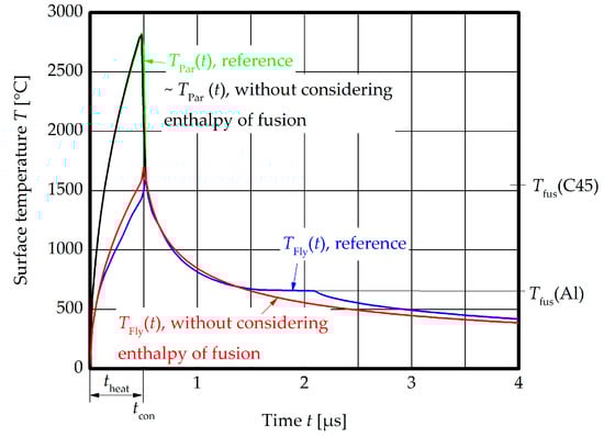 - The thermal energy of the CoP is responsible for the surface activation before both joining partners get into contact. In order to simplify the numerical model, this is assumed to be the only heat source. The heat input by plastic deformation after the collision is not considered in the model.