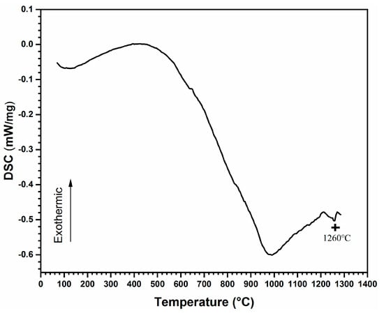 According to the above analysis, the precipitates were identified as the σ phases that were transformed from the initial FCC structure during SPS. As can be seen in Figure 2, the thickness of the σ phase precipitates decreased gradually as the SPS pressure increased from 30 to 40 MPa. In addition, the FCC to σ phase transition temperature of FeCoCrNiMo HEA was about 1260 °C, which was measured by DSC (Figure 7). The first exothermic peak is at about 960 °C, which represents the beginning of the sintering reaction and the formation of the FCC phase. However, phase transition occurs at 1150 °C under the SPS condition, which is attributed to the effect of sintering pressure in the SPS process. When pressure existed, the phase transformation became easier, which reduced the transformation temperature and shortened the time of transformation. Thus, the sintering pressure significantly reduced the phase transformation temperature. Moreover, the σ phase is an ordered tetragonal structure as an intermetallic compound. From the point of view of atomic stacking density, the change of phase-volume is sensitive to pressure, and the larger the pressure, the smaller the trend of phase volume grown up. This theory has been proven in TiAl-based alloys, which are also intermetallic compounds. Under HIP (Hot Isostatic Pressing) conditions, the phase volume is sensitive to sintering pressure []. This explained why when sintering pressure rose to 35 and 40 MPa, the volume fraction of the transformed σ structure decreased. Accordingly, the gradient distribution of microstructure is caused by the sintering pressure and by adjusting the sintering pressure, the volume fraction of phase transformation can be changed to obtain the required gradient materials.