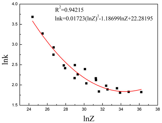 The relationship between the Z parameter and . The curve is obtained from polynomial fitting in the order of two. Here, the parameter is in the form of which is calculated in following chapter.