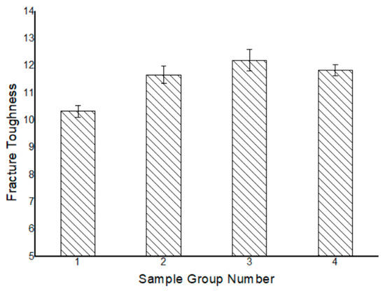Hu [33] also obtained the Vickers hardness of cemented carbide through experiments and calculated the fracture toughness of the sample. The fracture toughness of WC-6Co in his experiment was 10.6 MPam1/2. As shown in Figure 5, the fracture toughness of the samples with graphene or carbon nanotubes has been improved.