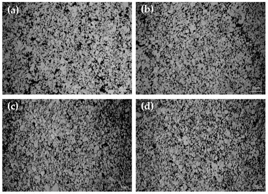 According to metallographic structure, it could be seen in Figure 6 that the porosity, morphology, and distribution of the bonded phase of the sintered samples were basically the same under the same experimental conditions.