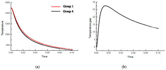 Figure 12a shows that the temperature of the graphene sample is always higher than that of the original sample during heat transfer and cooling. Figure 12b shows that the temperature difference increases rapidly at the beginning and then decreases rapidly after reaching its maximum value.