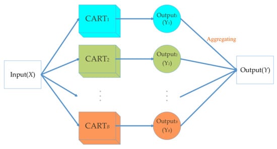 Assume that there are B CART models in the RF. For a new input variables X, the i-th CART would output a prediction value Yi (i = 1, 2, 3, …, B). The ensemble of all prediction value is the final prediction results of RF. The process is shown in Figure 4.