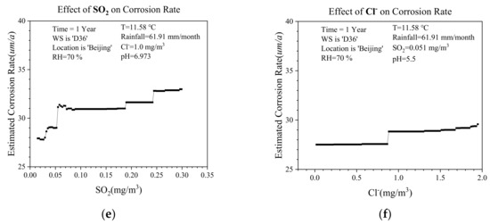 - Figure 10e shows that SO2 can promote the corrosion process, i.e., the higher SO2 corresponds to the higher corrosion rate. Besides, we also give a threshold of 0.61 (mg/cm3), which can lead to the sudden change of the corrosion rate.