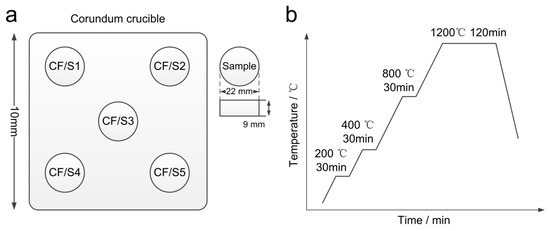 Samples arrangement (a) and sintering schedule for CF and SFCA (b).