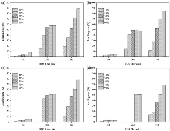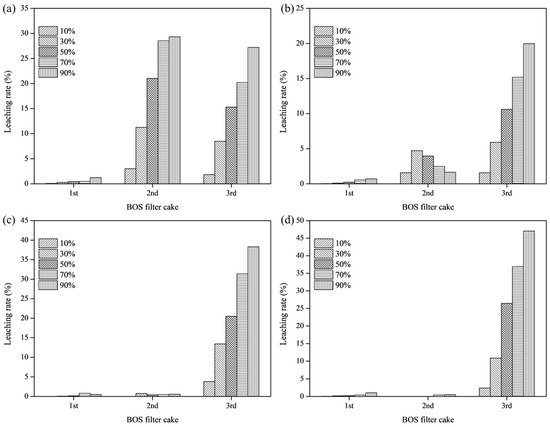 3.2. The Leaching Performance of the Different BOS Filter Cakes