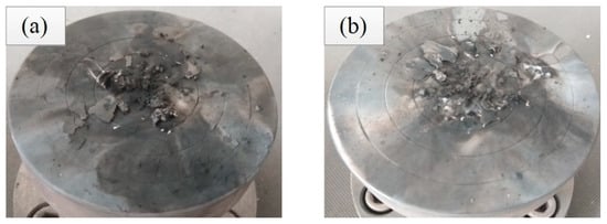 Reaction residues of completely reacted specimens under quasi-static compression (a) specimen 1# and (b) specimen 2#.