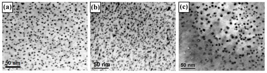 TEM (transmission electron microscope) images of the weld center aged at different temperatures for 24 h (a) 120 °C; (b) 130 °C; (c) 140 °C.