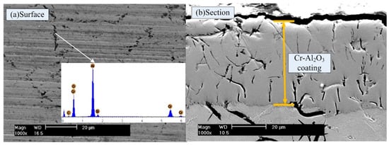 - Gao, J.F.; Suo, J.P. Preparation and characterization of the electrodeposited Cr–Al2O3/SiC composite coating. Appl. Surf. Sci. 2011, 257, 9643–9648. [Google Scholar] [CrossRef]