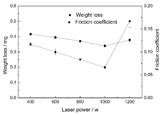 Effect of laser power on the weight loss and friction coefficient.