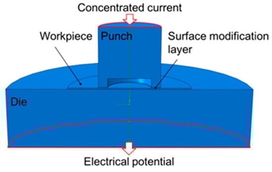 Yang, M.; Shimizu, T. Development of a Novel Resistance Heating System for Microforming Using Surface-Modified Dies and Evaluation of Its Heating Property. Metals 2019, 9, 440. https://doi.org/10.3390/met9040440