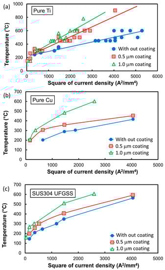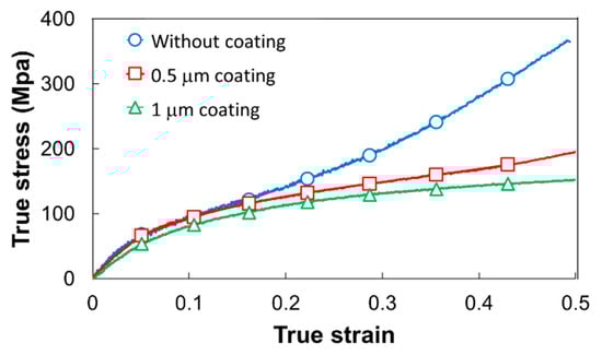 - The superior heating efficiency of all the processed materials, namely, pure titanium, pure copper, and stainless steel, was confirmed by the compression test using the die coated with AlCrSiN. The heat generated from the surface layer of the die suppressed the temperature decrease of the workpiece during the compression deformation.
