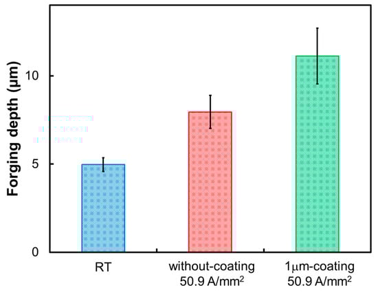 - It was confirmed that the forging depth was increased by the surface modification in the electric heating while microforging a fine-grain stainless steel foil material with a thickness of 0.2 mm, which is difficult to heat using a conventional heating system.