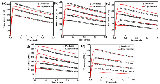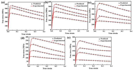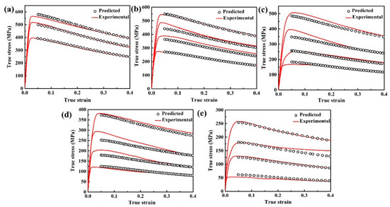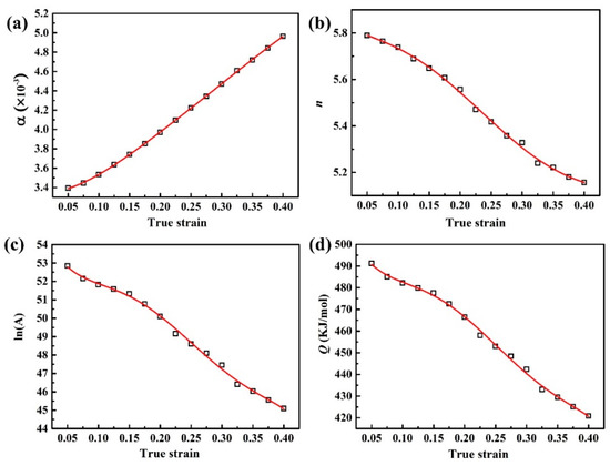 - Li, J.; Li, F.; Cai, J.; Wang, R.; Yuan, Z.; Xue, F. Flow behavior modeling of the 7050 aluminum alloy at elevated temperatures considering the compensation of strain. Mater. Des. 2012, 42, 369–377. [Google Scholar] [CrossRef]
