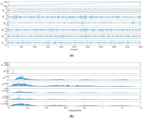 - The noisy signal is transformed by wavelet transform. A wavelet basis is selected to determine the level N of the wavelet decomposition at the same time, and then the signal x is decomposed by the N-level wavelet.