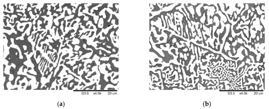 Microstructure at higher magnification (×4000): (a) Sn58Bi and (b) Sn57.6Bi0.4Ag.