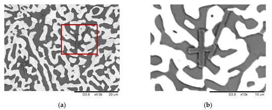 Rod-like phase discovered in Sn57.6Bi0.4Ag solder alloy: (a) ×4000 magnification and (b) ×10,000 magnification.