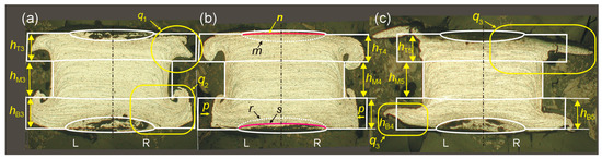 The metallographic cross-sections of the samples: (a) sample S3; (b) sample S4; and (c) sample S5.