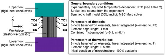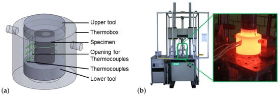 38]. Subsequently, the thermobox including the tools and the specimen was transferred to the servohydraulic forming simulator. The specimens were upset from initial height of