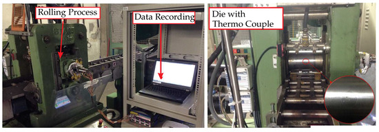 Without considering the rolling pressure in the rolling gap, the temperature of the rolling die at the exit of the rolling gap follows the relation given in Equation (5) [15]